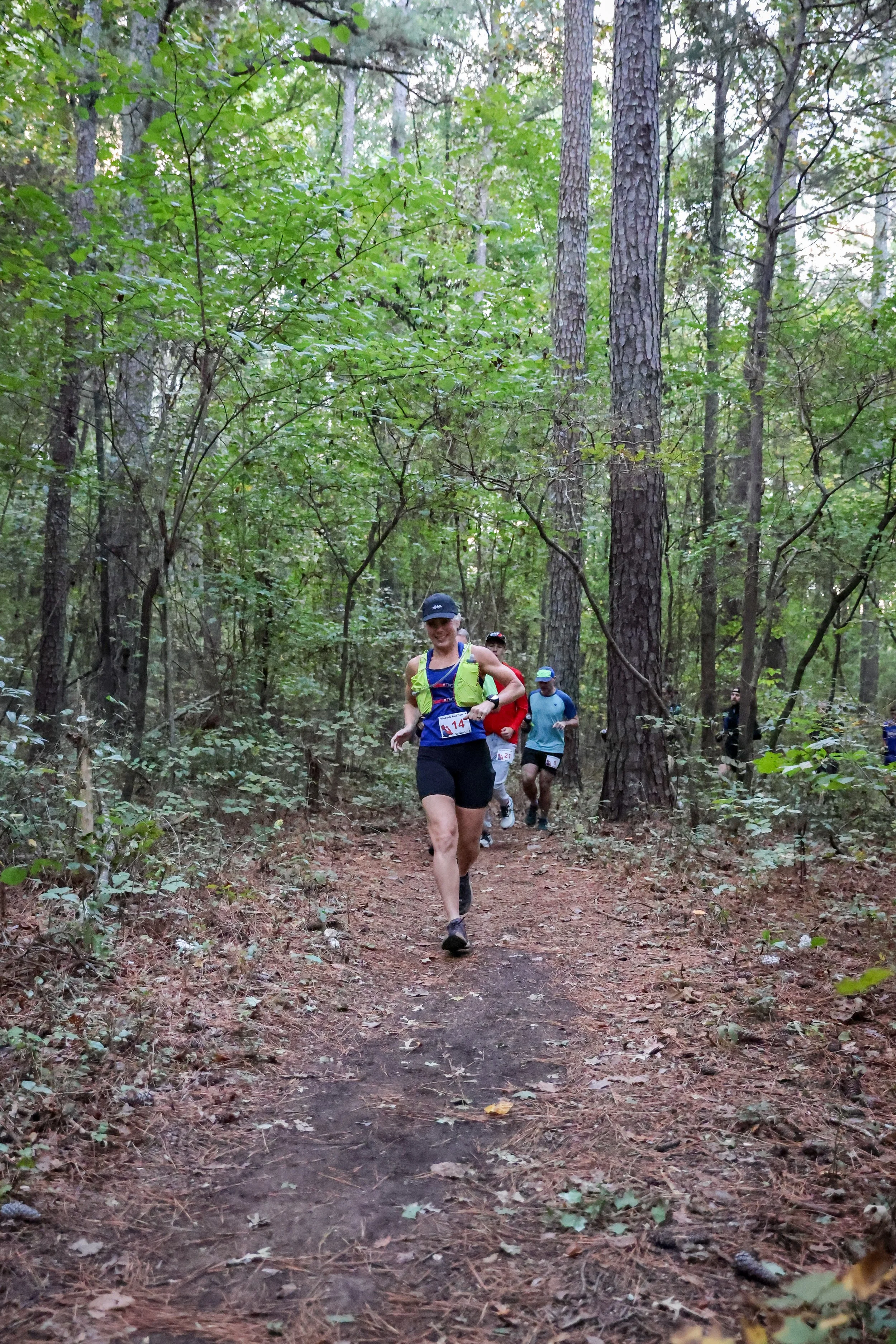 Not much is needed to get started. First and foremost, is a good pair of dedicated running shoes. Not the shoes that you wear to the gym or the grocery store. Go to a running specialty store and get properly fitted. A shoe that fits your foot and your running gait is very important. Next up, some good socks (not cotton) and moisture-wicking running clothes. You can find these almost anywhere and you don’t have to spend a ton of money. You will likely need a hand held water bottle, especially in warmer temps. Training for the 50k? You’ll need to check into a hydration pack. Check out my list of favorite running gear.